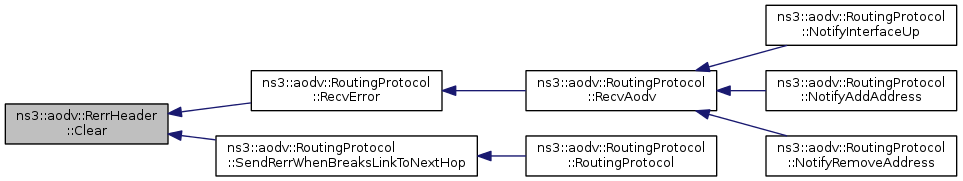 Here is the caller graph for this function:| void ns3::aodv::RerrHeader::Clear | ( | ) |