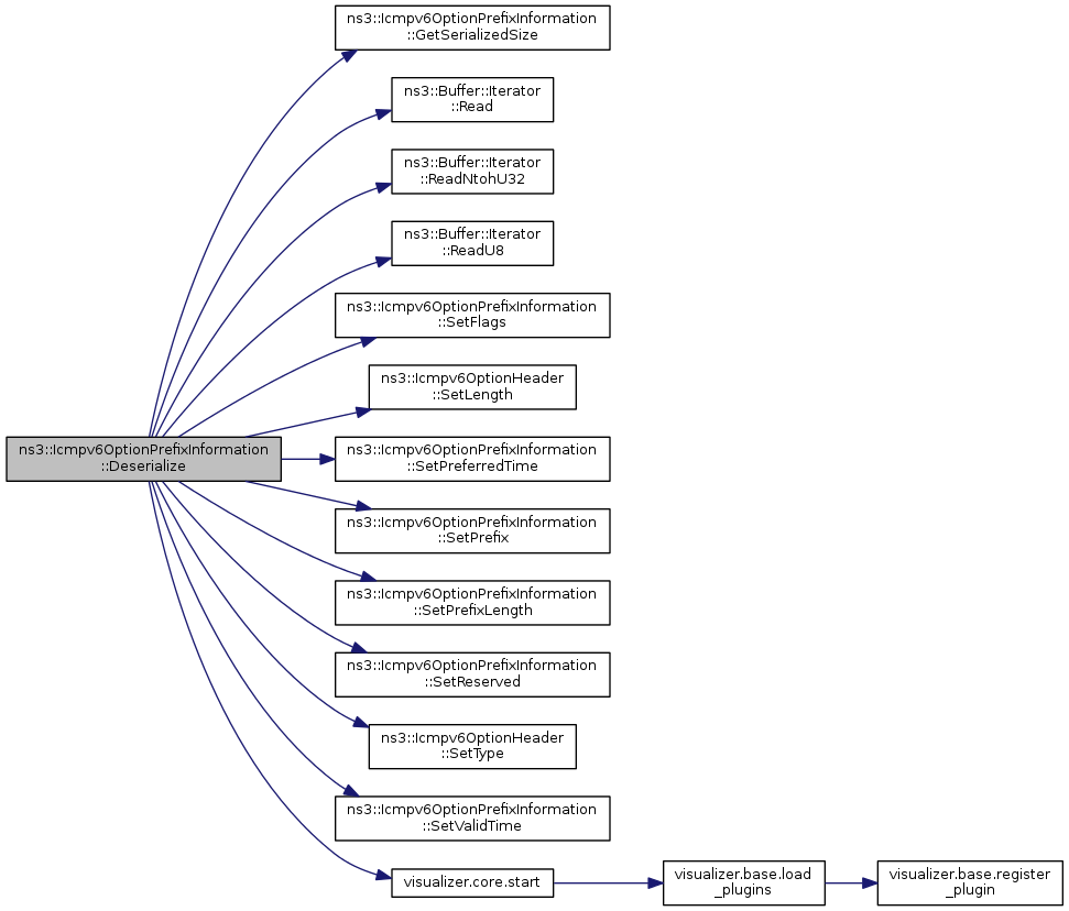 References GetSerializedSize(), NS_LOG_FUNCTION, ns3::Buffer::Iterator::Read(), ns3::Buffer::Iterator::ReadNtohU32(), ns3::Buffer::Iterator::ReadU8(), SetFlags(), ns3::Icmpv6OptionHeader::SetLength(), SetPreferredTime(), SetPrefix(), SetPrefixLength(), SetReserved(), ns3::Icmpv6OptionHeader::SetType(), SetValidTime(), and visualizer.core::start().