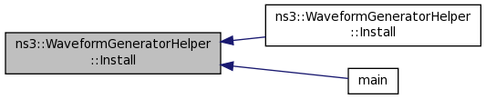 Here is the caller graph for this function:| NetDeviceContainer ns3::WaveformGeneratorHelper::Install | ( | Ptr< Node > | node | ) | const |
