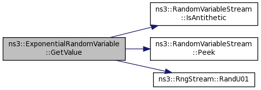 Here is the call graph for this function:| double ns3::ExponentialRandomVariable::GetValue | ( | double | mean, |