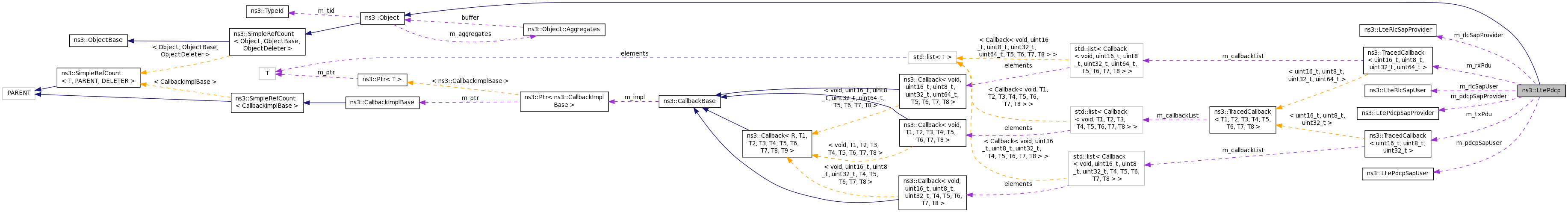 Collaboration diagram for ns3::LtePdcp:Classes | |