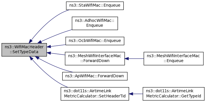 Here is the caller graph for this function:| void ns3::WifiMacHeader::SetTypeData | ( | void | ) |