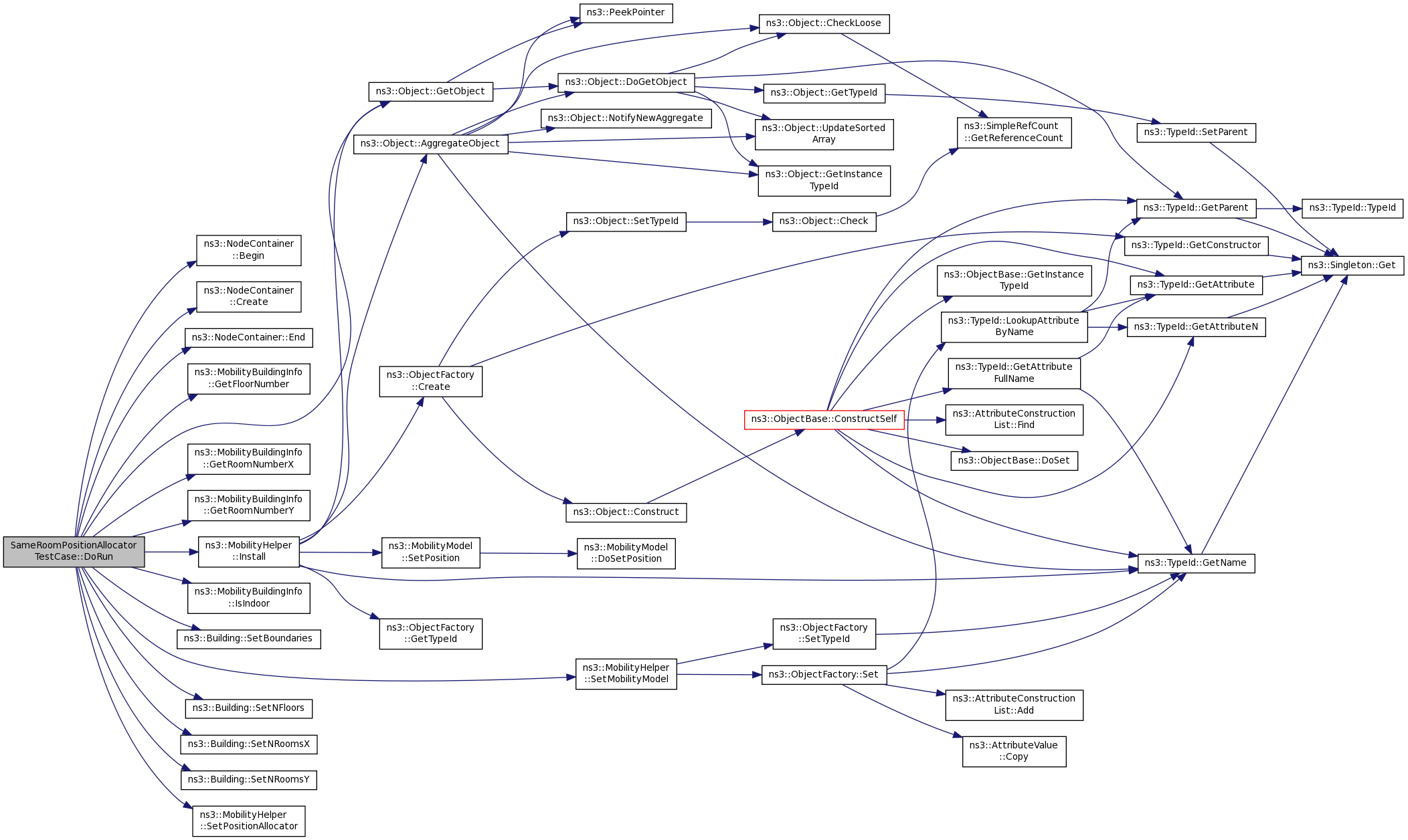 References ns3::NodeContainer::Begin(), ns3::NodeContainer::Create(), ns3::NodeContainer::End(), ns3::MobilityBuildingInfo::GetFloorNumber(), ns3::Object::GetObject(), ns3::MobilityBuildingInfo::GetRoomNumberX(), ns3::MobilityBuildingInfo::GetRoomNumberY(), ns3::MobilityHelper::Install(), ns3::MobilityBuildingInfo::IsIndoor(), first::nodes, NS_ASSERT_MSG, NS_LOG_FUNCTION, NS_LOG_LOGIC, NS_TEST_ASSERT_MSG_EQ, ns3::Building::SetBoundaries(), ns3::MobilityHelper::SetMobilityModel(), ns3::Building::SetNFloors(), ns3::Building::SetNRoomsX(), ns3::Building::SetNRoomsY(), and ns3::MobilityHelper::SetPositionAllocator().