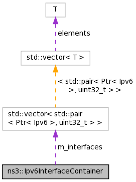 Collaboration diagram for ns3::Ipv6InterfaceContainer:Public Types | |