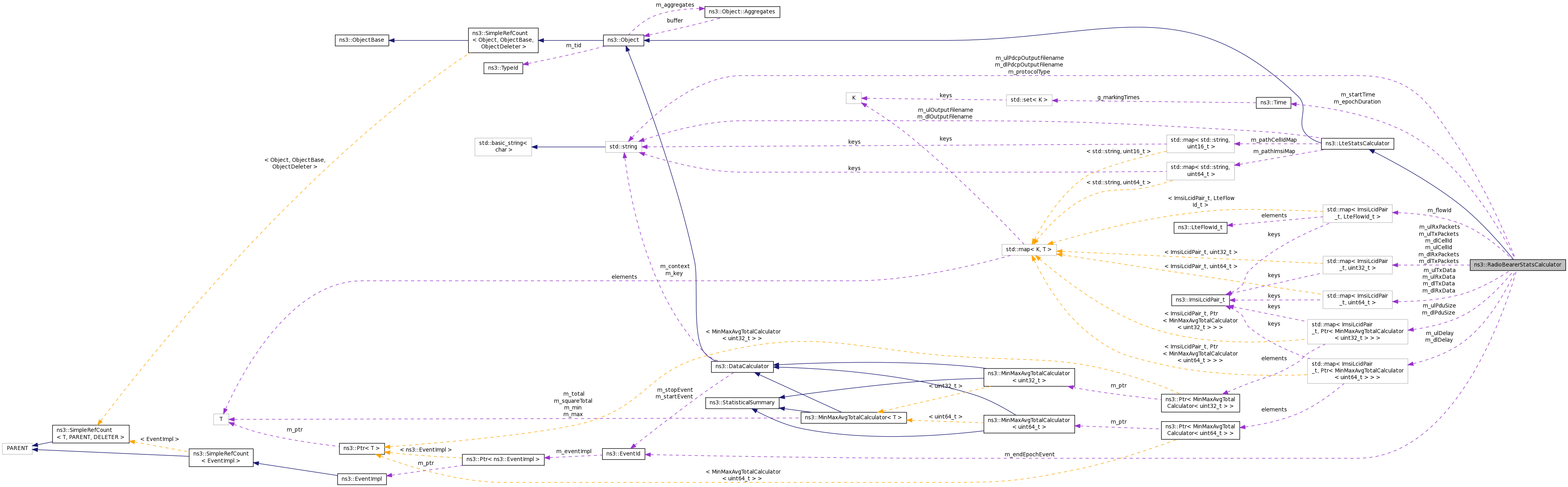 Collaboration diagram for ns3::RadioBearerStatsCalculator:Public Member Functions | |