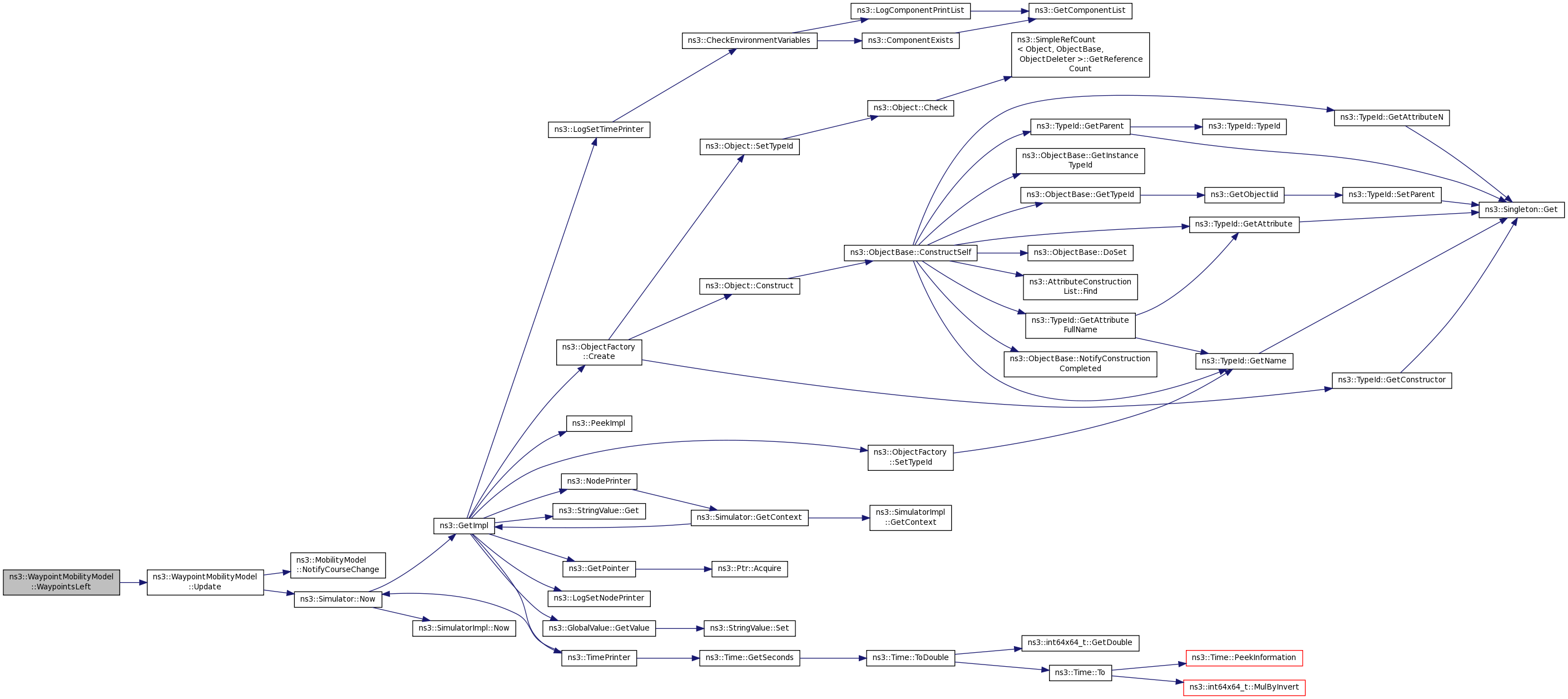 Here is the caller graph for this function:| uint32_t ns3::WaypointMobilityModel::WaypointsLeft | ( | void | ) | const |