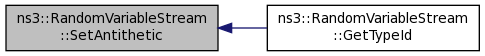 References GetStream(), IsAntithetic(), SetAntithetic(), ns3::TypeId::SetParent(), and SetStream().