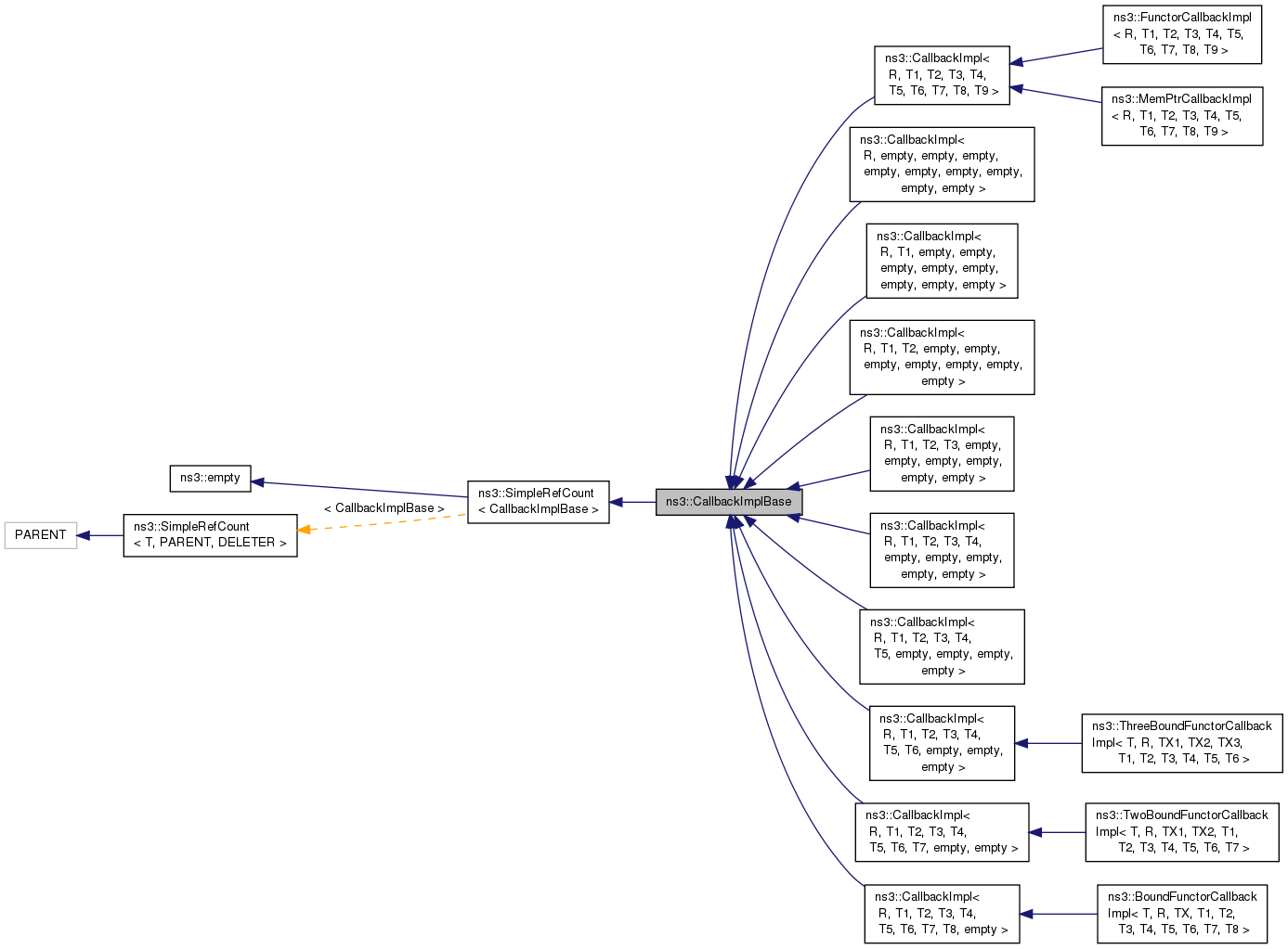 Inheritance diagram for ns3::CallbackImplBase: