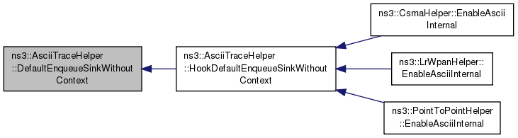 Referenced by ns3::WimaxHelper::EnableAsciiForConnection(), ns3::PointToPointHelper::EnableAsciiInternal(), ns3::LrWpanHelper::EnableAsciiInternal(), ns3::CsmaHelper::EnableAsciiInternal(), and HookDefaultEnqueueSinkWithContext().
