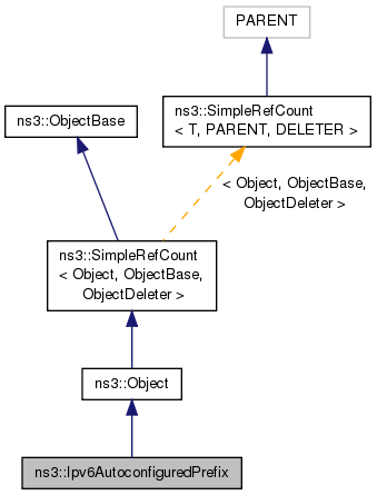 Inheritance diagram for ns3::Ipv6AutoconfiguredPrefix: