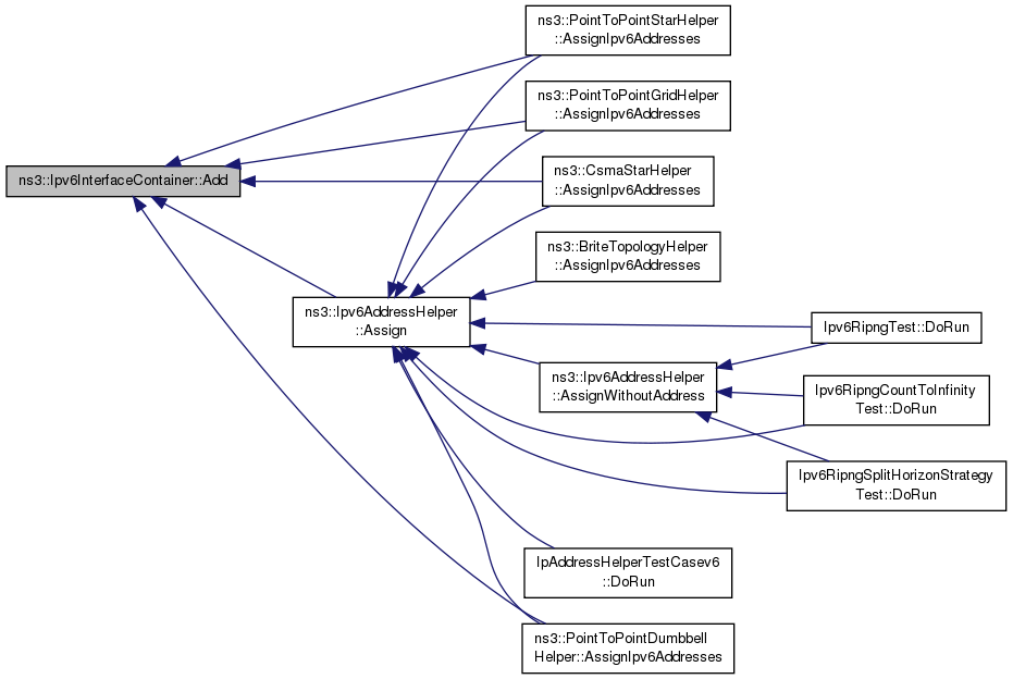 Here is the caller graph for this function:| void ns3::Ipv6InterfaceContainer::Add | ( | const Ipv6InterfaceContainer & | c | ) |