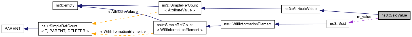 Collaboration diagram for ns3::SsidValue:Public Member Functions | |