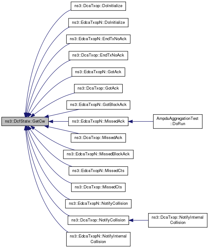 Referenced by ns3::DcaTxop::DoInitialize(), ns3::EdcaTxopN::DoInitialize(), ns3::EdcaTxopN::EndTxNoAck(), ns3::DcaTxop::EndTxNoAck(), ns3::EdcaTxopN::GotAck(), ns3::DcaTxop::GotAck(), ns3::EdcaTxopN::GotBlockAck(), ns3::EdcaTxopN::MissedAck(), ns3::DcaTxop::MissedAck(), ns3::EdcaTxopN::MissedBlockAck(), ns3::EdcaTxopN::MissedCts(), ns3::DcaTxop::MissedCts(), ns3::EdcaTxopN::NotifyInternalCollision(), ns3::DcfManager::NotifyOnNow(), ns3::DcfManager::NotifySwitchingStartNow(), ns3::DcfManager::NotifyWakeupNow(), SetCwMax(), and SetCwMin().