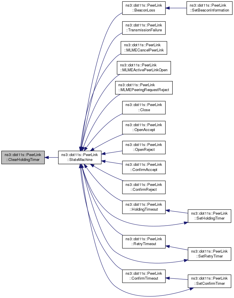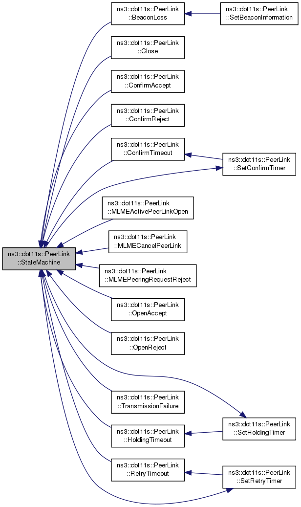 References ACTOPN, ClearConfirmTimer(), ClearHoldingTimer(), ClearRetryTimer(), CLS_ACPT, CNCL, CNF_ACPT, CNF_RCVD, CNF_RJCT, ESTAB, ns3::Mac48Address::GetBroadcast(), HOLDING, IDLE, m_interface, m_linkStatusCallback, m_peerAddress, m_peerMeshPointAddress, m_retryCounter, m_state, NS_ASSERT, OPN_ACPT, OPN_RCVD, OPN_RJCT, OPN_SNT, ns3::dot11s::REASON11S_MESH_CLOSE_RCVD, ns3::dot11s::REASON11S_MESH_CONFIRM_TIMEOUT, ns3::dot11s::REASON11S_MESH_MAX_RETRIES, ns3::dot11s::REASON11S_PEERING_CANCELLED, REQ_RJCT, SendPeerLinkClose(), SendPeerLinkConfirm(), SendPeerLinkOpen(), SetConfirmTimer(), SetHoldingTimer(), SetRetryTimer(), TOC, TOH, TOR1, and TOR2.