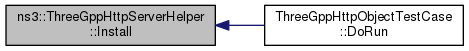 Here is the caller graph for this function:| ApplicationContainer ns3::ThreeGppHttpServerHelper::Install | ( | Ptr< Node > | node | ) | const |