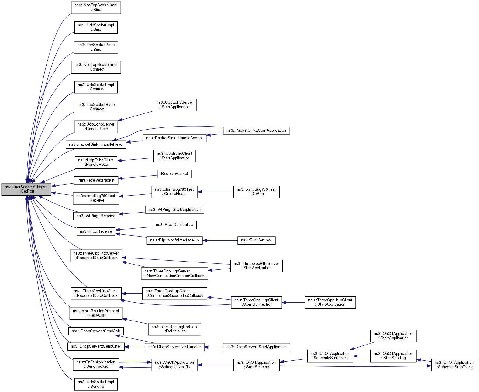 Here is the caller graph for this function:| uint16_t ns3::InetSocketAddress::GetPort | ( | void | ) | const |