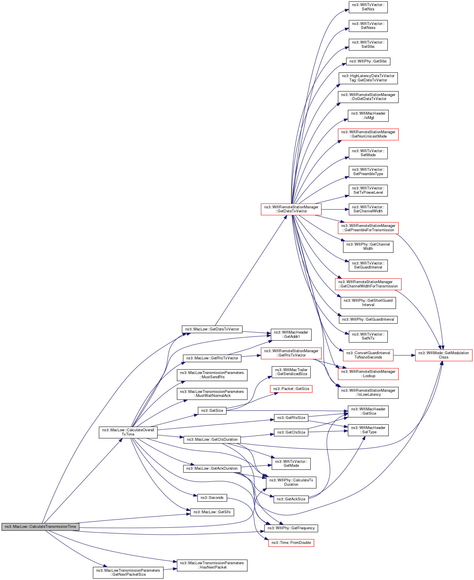 | Time | CalculateTransmissionTime (Ptr< const Packet > packet, const WifiMacHeader *hdr, const MacLowTransmissionParameters ¶meters) const |