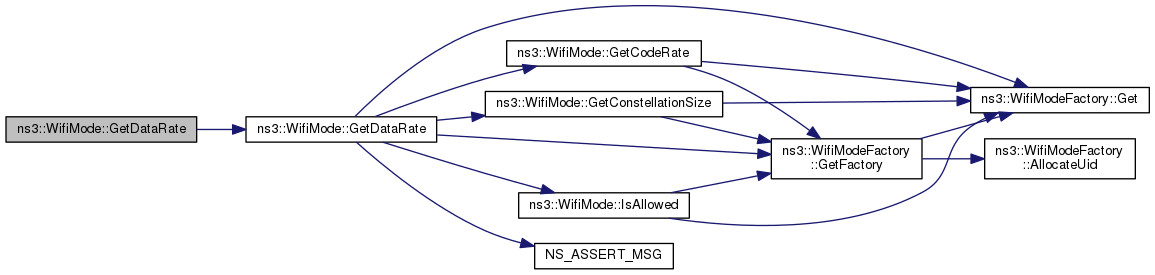 Here is the call graph for this function:| uint64_t ns3::WifiMode::GetDataRate | ( | uint16_t | channelWidth | ) | const |