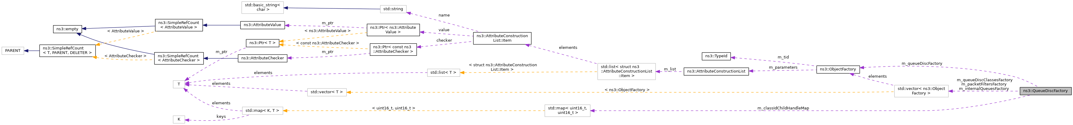 This class stores object factories required to create a queue disc and all of its components (packet filters, internal queues, classes). More...