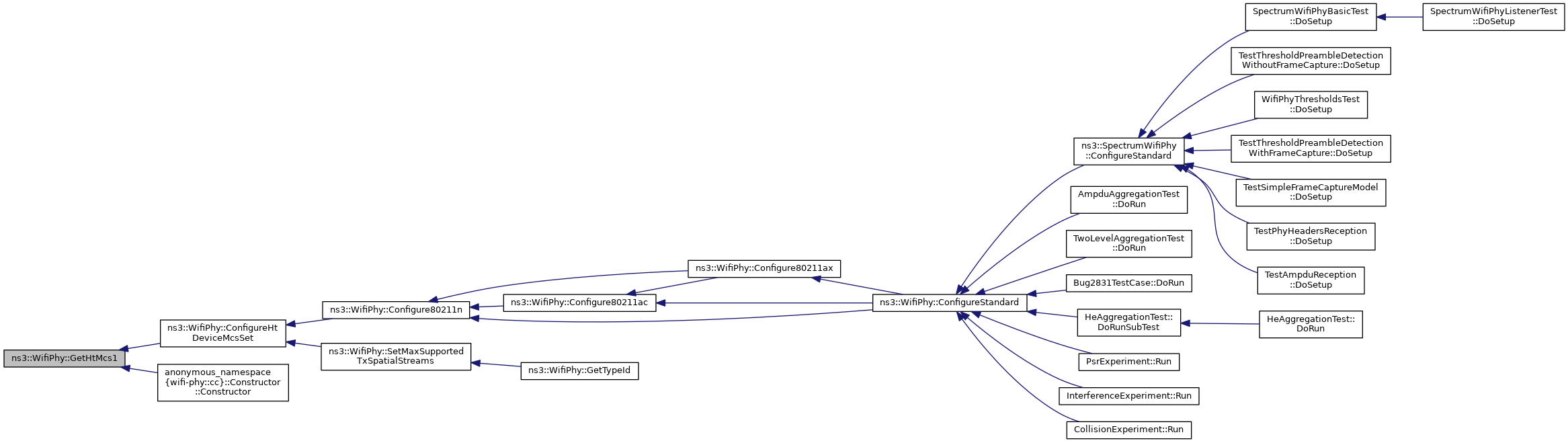 | The WifiPhy::GetMcs() method is used (e.g., by a WifiRemoteStationManager) to determine the set of transmission/reception MCS indexes that this WifiPhy(-derived class) can support - a set of MCS indexes which we call the DeviceMcsSet, and which is stored as WifiPhy::m_deviceMcsSet. More... | |