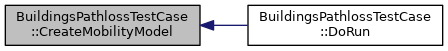 References CreateMobilityModel(), ns3::HybridBuildingsPropagationLossModel::GetLoss(), m_city, m_env, m_freq, m_lossRef, m_mobilityModelIndex1, m_mobilityModelIndex2, NS_LOG_FUNCTION, NS_LOG_INFO, NS_TEST_ASSERT_MSG_EQ_TOL, ns3::ObjectBase::SetAttribute(), ns3::Building::SetBoundaries(), ns3::Building::SetBuildingType(), ns3::Building::SetExtWallsType(), and ns3::Building::SetNFloors().