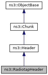 Collaboration diagram for ns3::RadiotapHeader:Public Member Functions | |