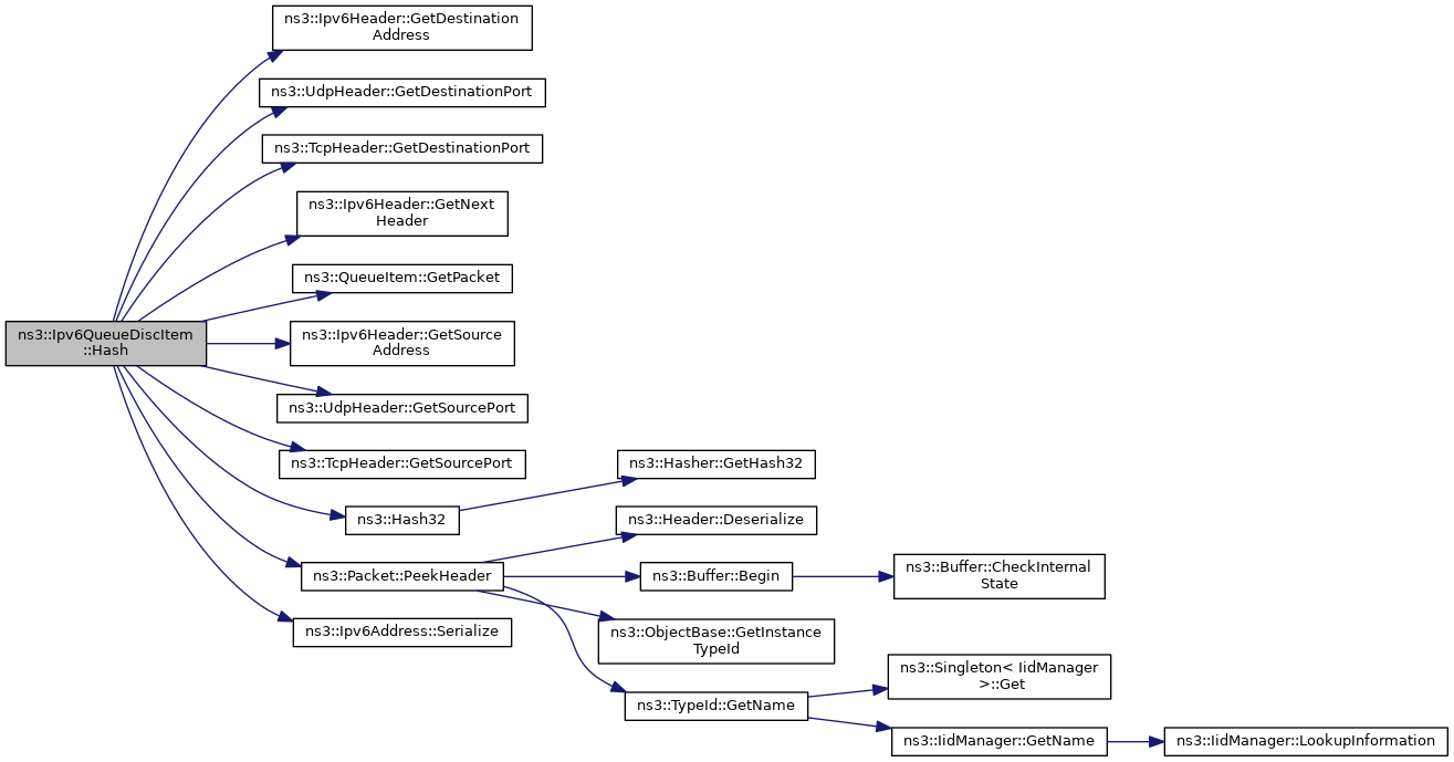 References ns3::Ipv6Header::GetDestinationAddress(), ns3::UdpHeader::GetDestinationPort(), ns3::TcpHeader::GetDestinationPort(), ns3::Ipv6Header::GetNextHeader(), ns3::QueueItem::GetPacket(), ns3::Ipv6Header::GetSourceAddress(), ns3::UdpHeader::GetSourcePort(), ns3::TcpHeader::GetSourcePort(), hash, ns3::Hash32(), m_header, NS_LOG_DEBUG, NS_LOG_FUNCTION, NS_LOG_WARN, ns3::Packet::PeekHeader(), and ns3::Ipv6Address::Serialize().