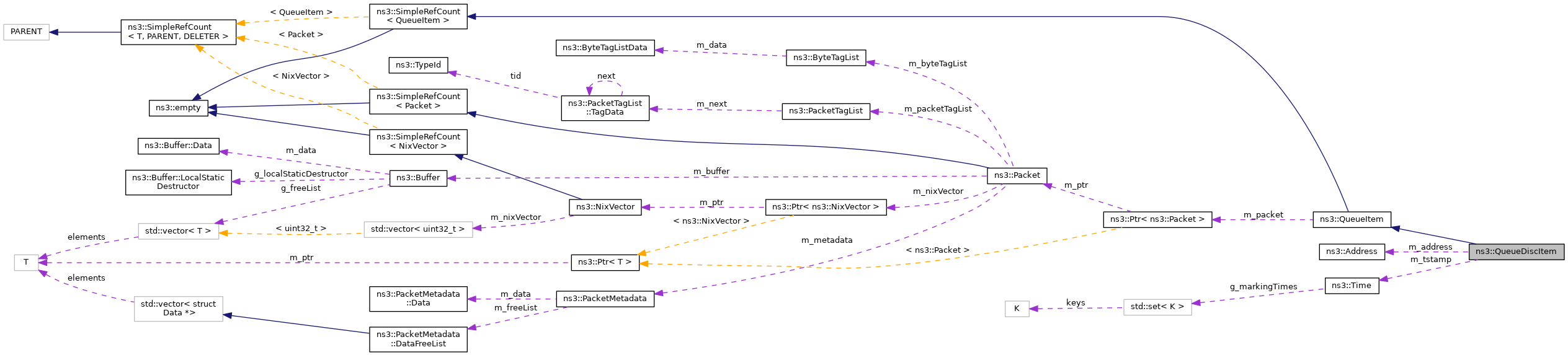 QueueDiscItem is the abstract base class for items that are stored in a queue disc. More...