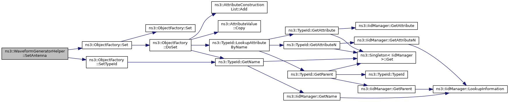 Here is the call graph for this function:| void ns3::WaveformGeneratorHelper::SetAntenna | ( | std::string | type, |