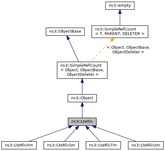 Inheritance diagram for ns3::LteRlc: