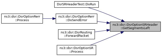 Here is the caller graph for this function:| uint8_t ns3::dsr::DsrOptionSRHeader::GetSegmentsLeft | ( | ) | const |