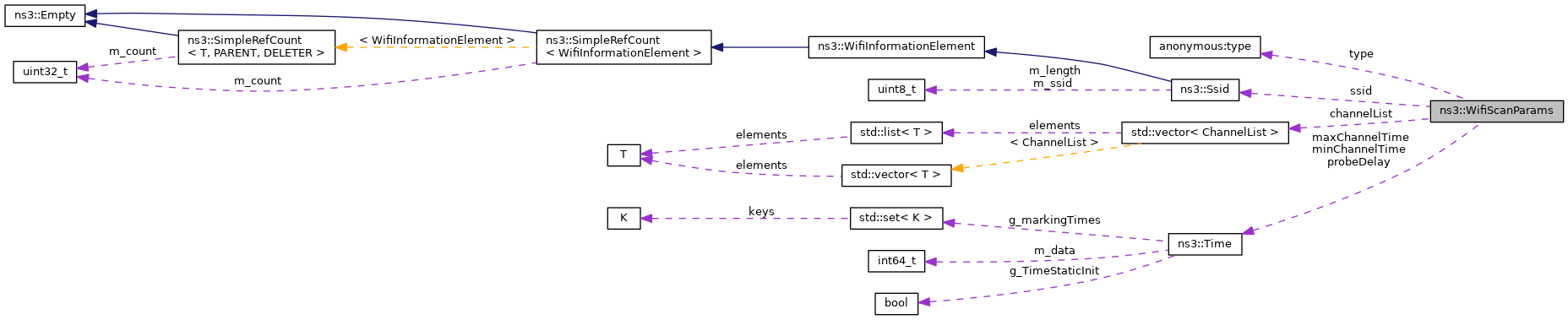 Collaboration diagram for ns3::WifiScanParams:Classes | |