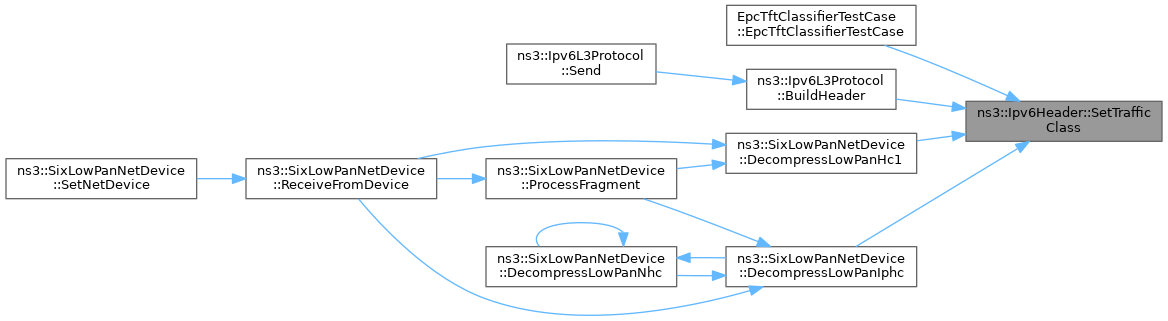 Here is the caller graph for this function:| void ns3::Ipv6Header::SetTrafficClass | ( | uint8_t | traffic | ) |