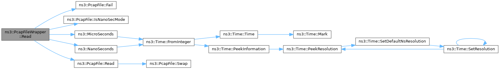 References ns3::PcapFile::Fail(), ns3::PcapFile::IsNanoSecMode(), m_file, ns3::MicroSeconds(), ns3::NanoSeconds(), and ns3::PcapFile::Read().