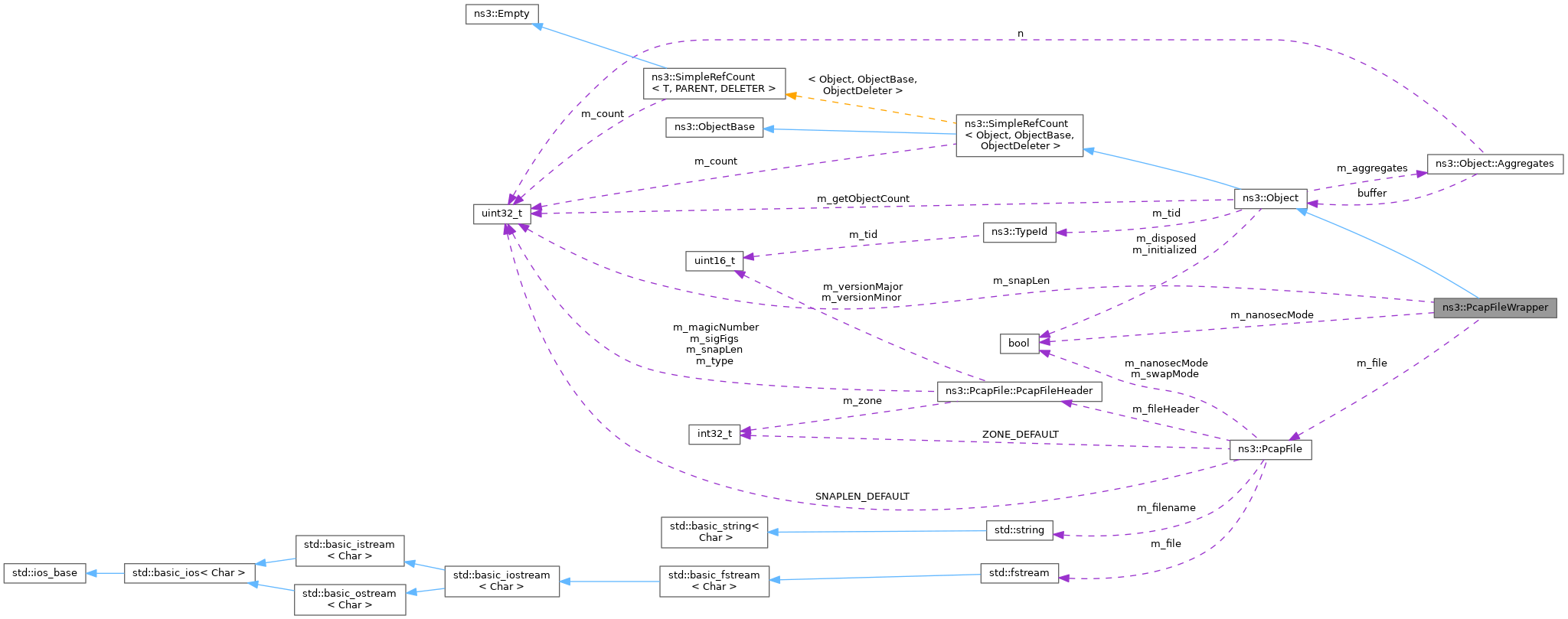 A class that wraps a PcapFile as an ns3::Object and provides a higher-layer ns-3 interface to the low-level public methods of PcapFile. More...