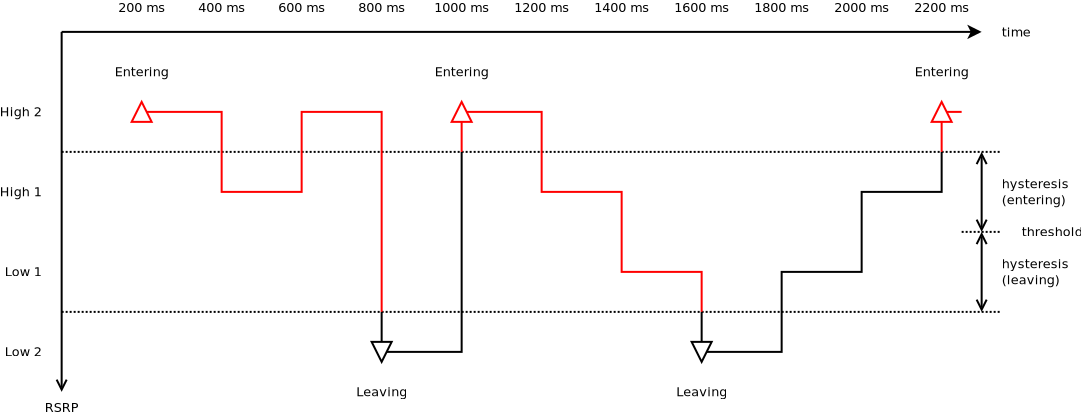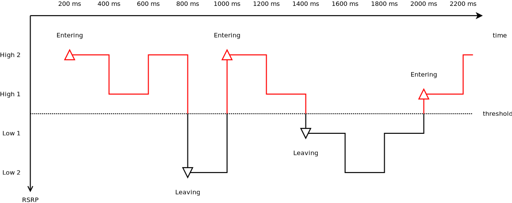 In this scenario, the UE is initially placed near to the eNB, and on the following instances above conditions are verified against the expected outcome.